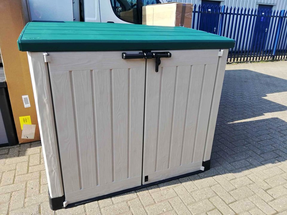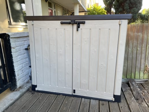 Ideal outdoor storage solution for garden tools, equipment and x2 240 L wheelie bins